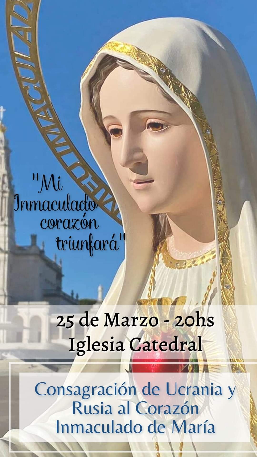 Queridos hermanos los invitamos a participar de la Consagración al Corazón Inmaculado de María que el Papa Francisco realizará de Ucrania y Rusia.
