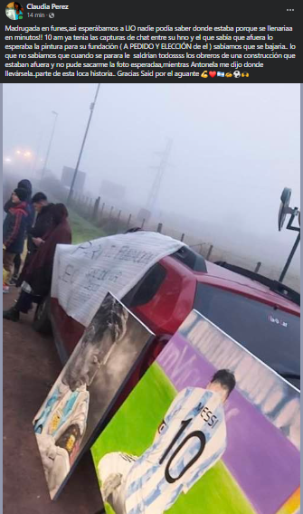 Hace unos meses atrás el cuadro de Claudia se volvió viral en todo el país y el objetivo claramente era que llegue a Messi. Recorrió medios de todo el país, fue entrevistada y felicitada por cientos de miles de personas. Finalmente en la jornada de ayer jueves sucedióel milagro. El 10 tras los últimos partidos con la selección está de vacaciones en el país, estuvo en el cumple de su sobrino, hijo de la hermana de Antonella, entre otros lugares que recorrió. Fanáticos los seguían y esperaban para verlo afuera de su casa en Funes (una localidad cerca de Rosario) y ahí entre ellos, estaba Claudia, expectante a poder cruzarlo y mostrarle la maravillosa pintura que realizó. La pulga muy amable y sorprendido tomó el marcador y sin dudarlo estampó su firma.