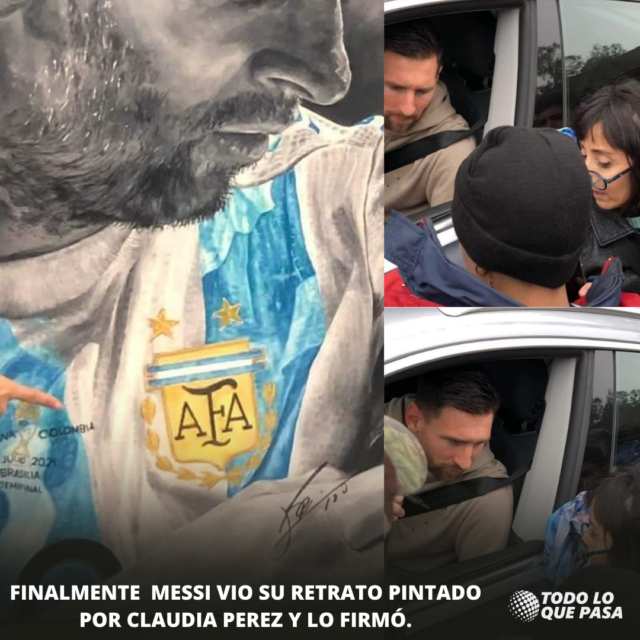 Hace unos meses atrás el cuadro de Claudia se volvió viral en todo el país y el objetivo claramente era que llegue a Messi. Recorrió medios de todo el país, fue entrevistada y felicitada por cientos de miles de personas. Finalmente en la jornada de ayer jueves sucedióel milagro. El 10 tras los últimos partidos con la selección está de vacaciones en el país, estuvo en el cumple de su sobrino, hijo de la hermana de Antonella, entre otros lugares que recorrió. Fanáticos los seguían y esperaban para verlo afuera de su casa en Funes (una localidad cerca de Rosario) y ahí entre ellos, estaba Claudia, expectante a poder cruzarlo y mostrarle la maravillosa pintura que realizó. La pulga muy amable y sorprendido tomó el marcador y sin dudarlo estampó su firma.