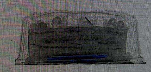 El personal del Servicio Penitenciario detectó el dispositivo al realizar los controles habituales mediante escáner. En las imágenes, la base del pastel mostraba una silueta sospechosa, lo que motivó una inspección más detallada. Efectivamente, dentro del bizcochuelo hallaron un moderno teléfono celular camuflado.