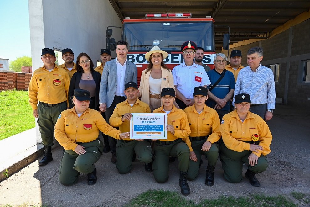 Luego del acto, la vicegobernadora y su comitiva se trasladaron al cuartel de Bomberos Voluntarios de San José de la Dormida. Allí, Prunotto entregó un aporte provincial de 20 millones de pesos a esa institución.