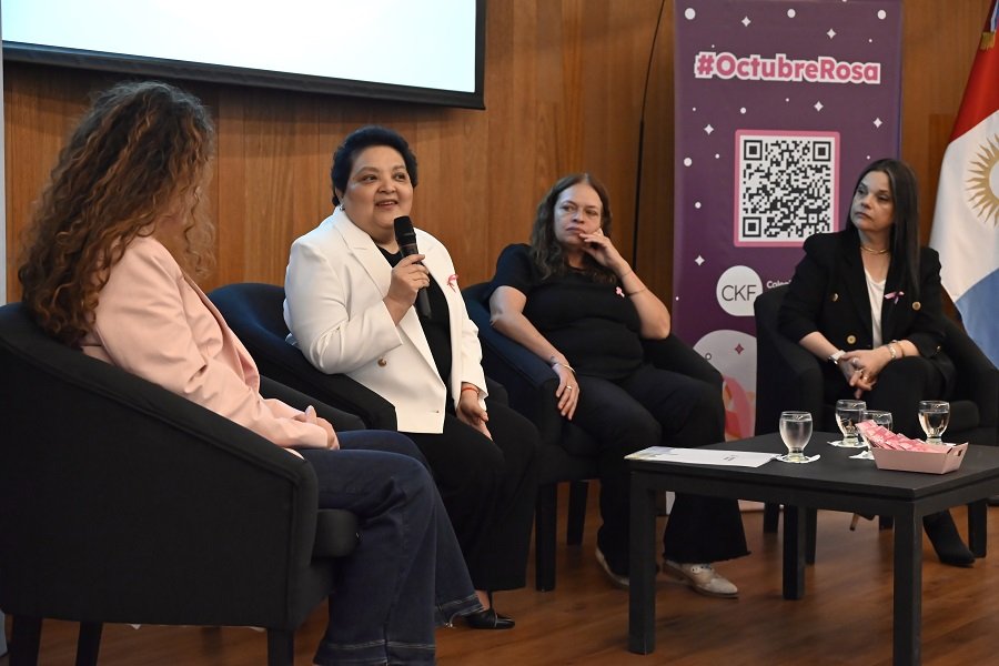 Momentos más tarde, Claudia Martínez se refirió al rol de la salud pública con perspectiva de género, destacando la importancia de la articulación entre instituciones: “Poder concretar este encuentro, este conversatorio, es también cumplir un sueño: el de reunirnos, escucharnos y aportar, desde cada lugar, a una causa que nos atraviesa como sociedad. El Foro Córdoba Rosa, creado por ley en 2017, nació de la articulación entre instituciones que ya venían trabajando en la temática —colegios profesionales, fundaciones, asociaciones civiles— y nos permitió visibilizar mucho más todo lo que se hace, llegar a más personas y construir conciencia”.
