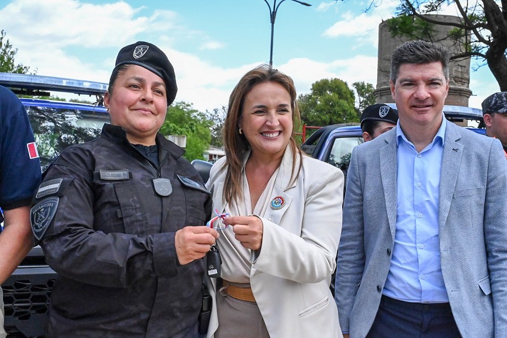La vicegobernadora de Córdoba presidió el acto de entrega de móviles y equipamiento en la ciudad del sudeste provincial.