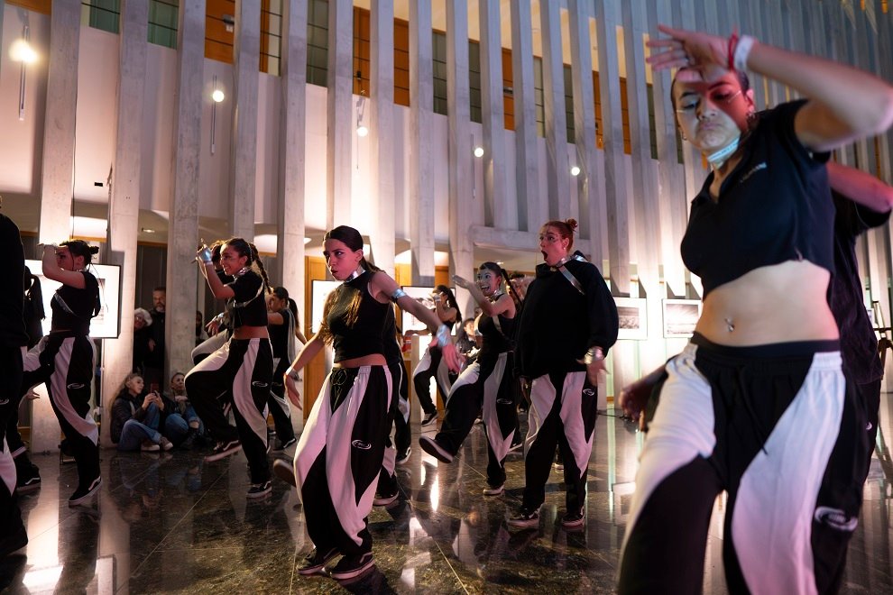 En el hall ubicado en el primer piso de la nueva Unicameral, se realizó una intervención de hip-hop con estética futurista, música y movimiento denominada “Fash mob”, a cargo de la academia de danzas Imax, de Maxi Chavarría, y en la que participaron una treintena de bailarines.