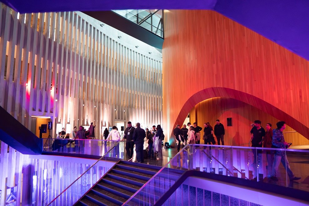 Una estética más actual y hasta futurista tuvo lugar en el edificio nuevo de la Unicameral. Con su arquitectura moderna, juegos de luces e intervenciones artísticas, el inmueble de Olmos 580 se transformó en un atractivo centro cultural de puertas abiertas. Innovación, juventud y participación ciudadana fueron los ejes de la propuesta y eso hizo que el edificio tuviera amplia concurrencia juvenil.