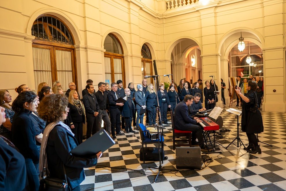 Desde las 20, muchos visitantes ingresaron a la Legislatura Histórica y permanecieron hasta el cierre de las actividades, a la 1 de la madrugada del sábado. Al ingresar por calle Deán Funes 94, disfrutaron seis canciones interpretadas por el Coro de la Legislatura, dirigido por Alejandra Seimandi e integrado por más de 35 voces femeninas y masculinas. Acompañaron el pianista Federico Menis, director de Asuntos Culturales y Patrimoniales de la Unicameral; el percusionista Rubén Sosa; y el también tecladista Mauricio Canducci, quien introdujo distintos sonidos y narraciones al repertorio del Coro. En la fría noche de noviembre, el público brindó cálidos aplausos a la agrupación coral legislativa.