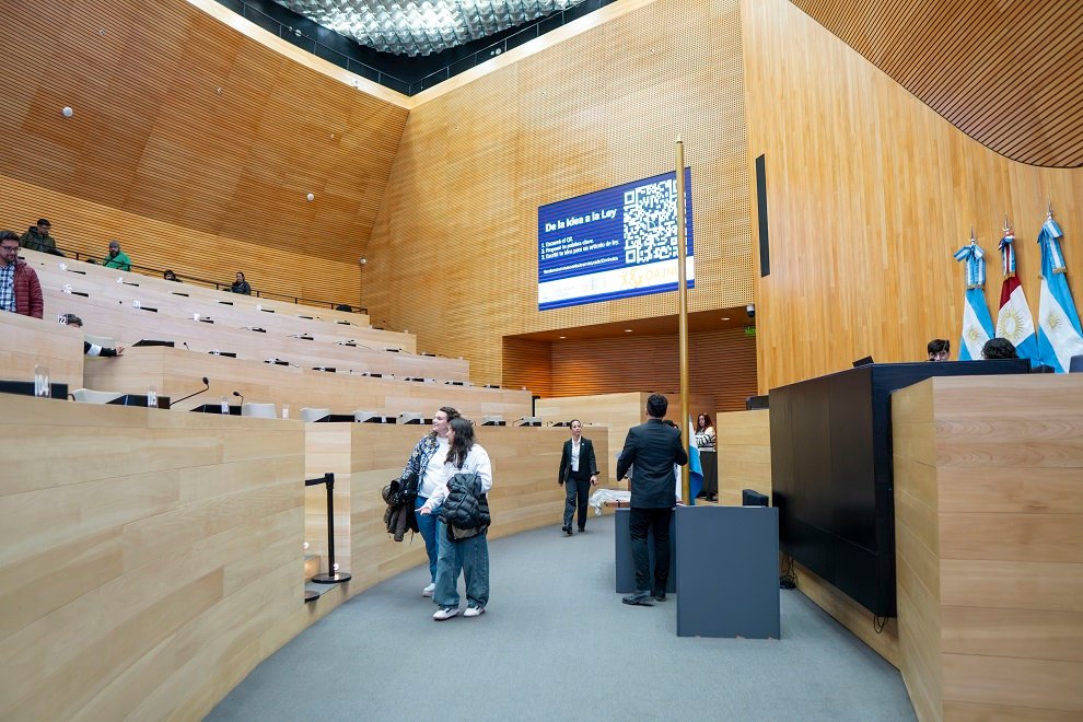 Posteriormente, en el recinto legislativo, una decena de representantes de la Organización Argentina de Jóvenes para las Naciones Unidas (Oajnu) presentaron “De la idea a la ley”, una propuesta innovadora, dinámica, educativa y participativa, a través de la cual se invitó al público a experimentar la función legislativa en el recinto de sesiones, desde una mirada joven, digital e inclusiva. Así, se brindó a los visitantes la posibilidad de convertirse en protagonistas durante algunos minutos.