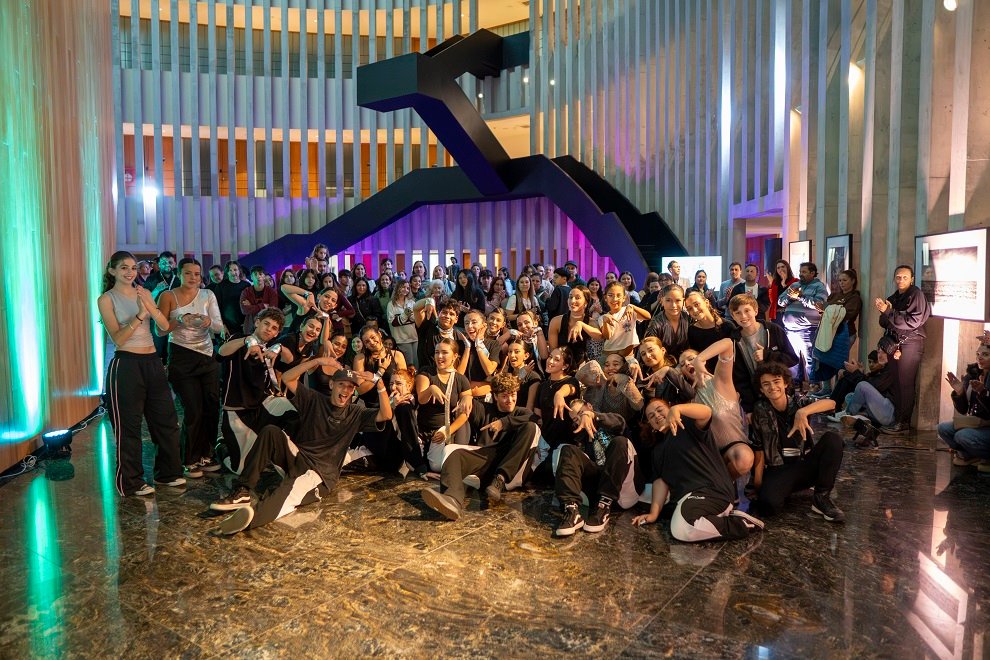 En el hall ubicado en el primer piso de la nueva Unicameral, se realizó una intervención de hip-hop con estética futurista, música y movimiento denominada “Fash mob”, a cargo de la academia de danzas Imax, de Maxi Chavarría, y en la que participaron una treintena de bailarines.