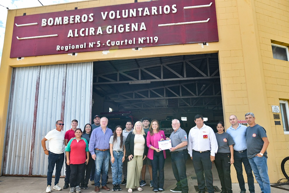 En el marco de su gira por el sur provincial, la vicegobernadora de Córdoba, Myrian Prunotto, a cargo del Poder Ejecutivo provincial, entregó este miércoles un aporte de 20 millones a la Asociación de Bomberos Voluntarios de Alcira Gigena, destinado a realizar refacciones edilicias en el cuartel.