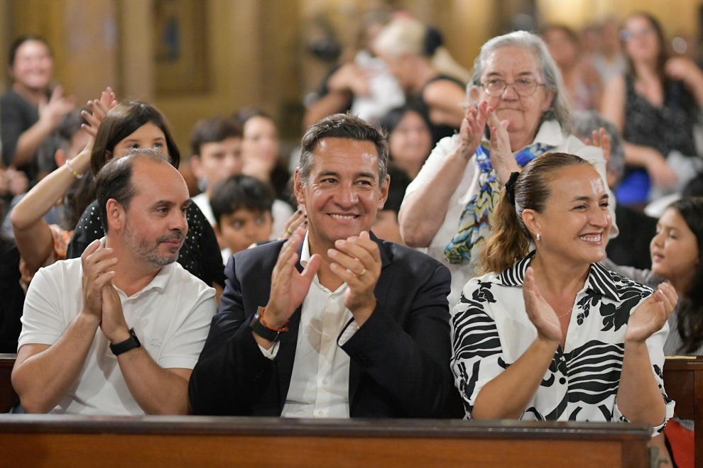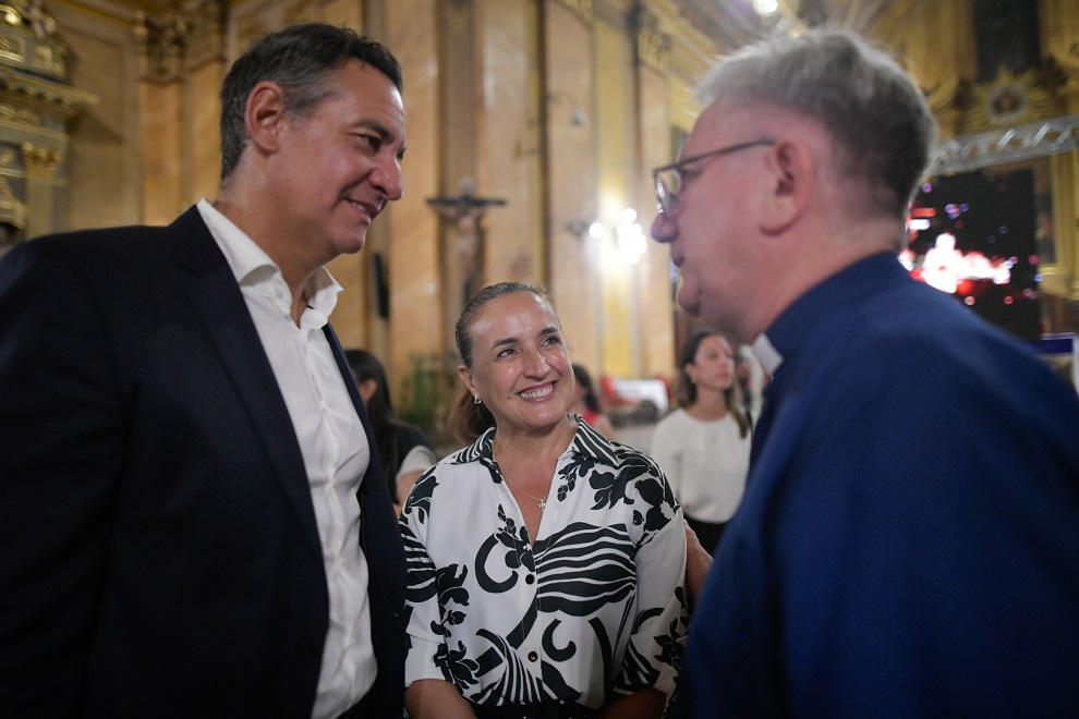 La jornada comenzó con la recepción de la vicegobernadora por parte del sacerdote Javier Soteras. Posteriormente, en la explanada de la Catedral, tuvo lugar un emotivo momento con la bendición de la nueva iluminación ornamental, que realza el valor patrimonial y arquitectónico del templo mayor de la ciudad.