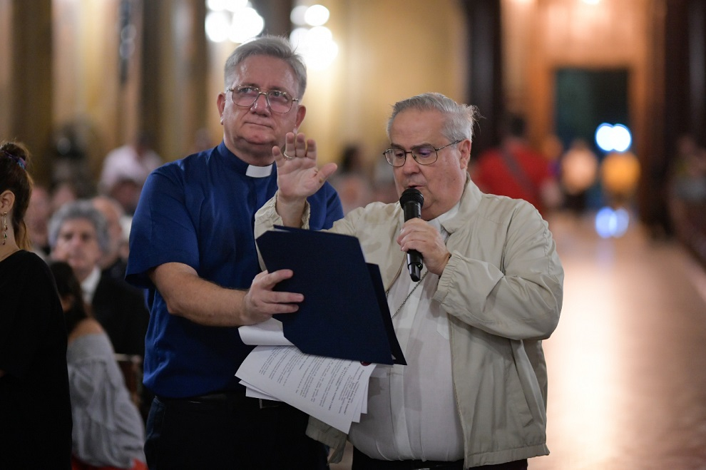 Luego, autoridades y fieles ingresaron al interior de la Catedral para participar en la bendición del nuevo sistema de sonido de la histórica iglesia, una mejora sustancial que permitirá optimizar la participación y la experiencia de la comunidad en las celebraciones litúrgicas.